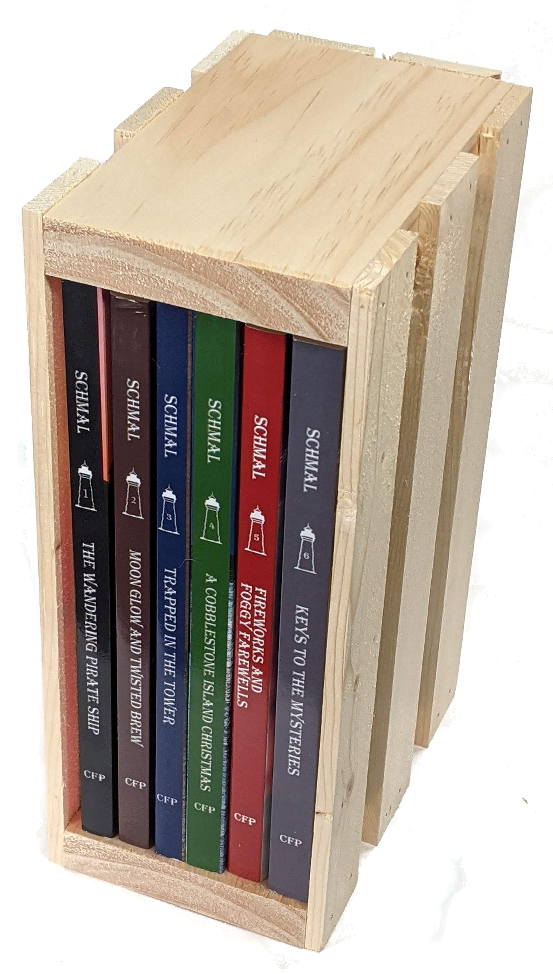 The wood crate set includes all six books in the Children of the Light series.
